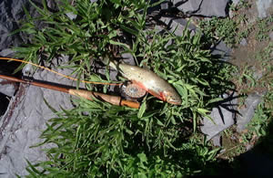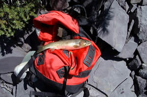 Cuthroat trout taken August 2, 2002 from a high mountain lake west of Lincoln, Montana.